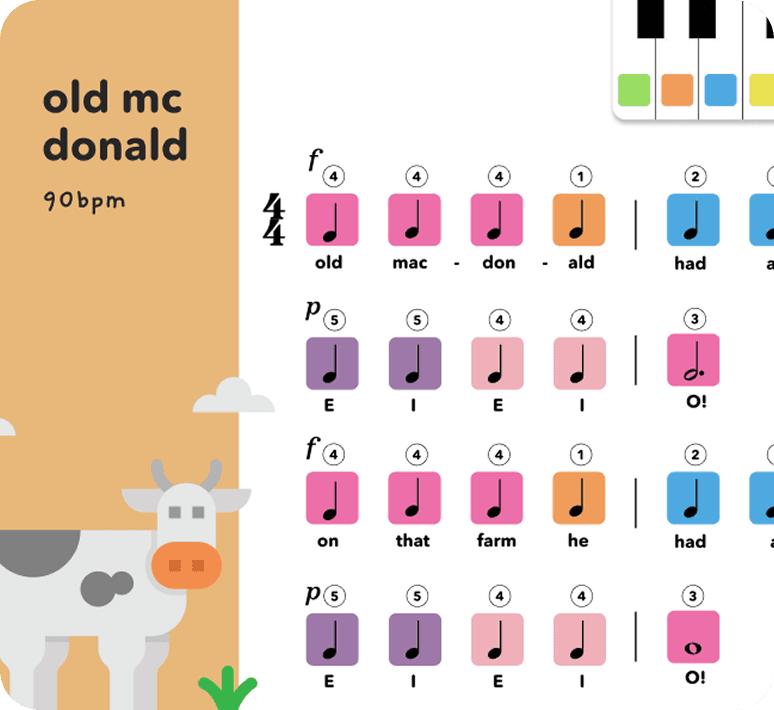 color-coded keys, explore keyboard sounds, and play 4 familiar songs.