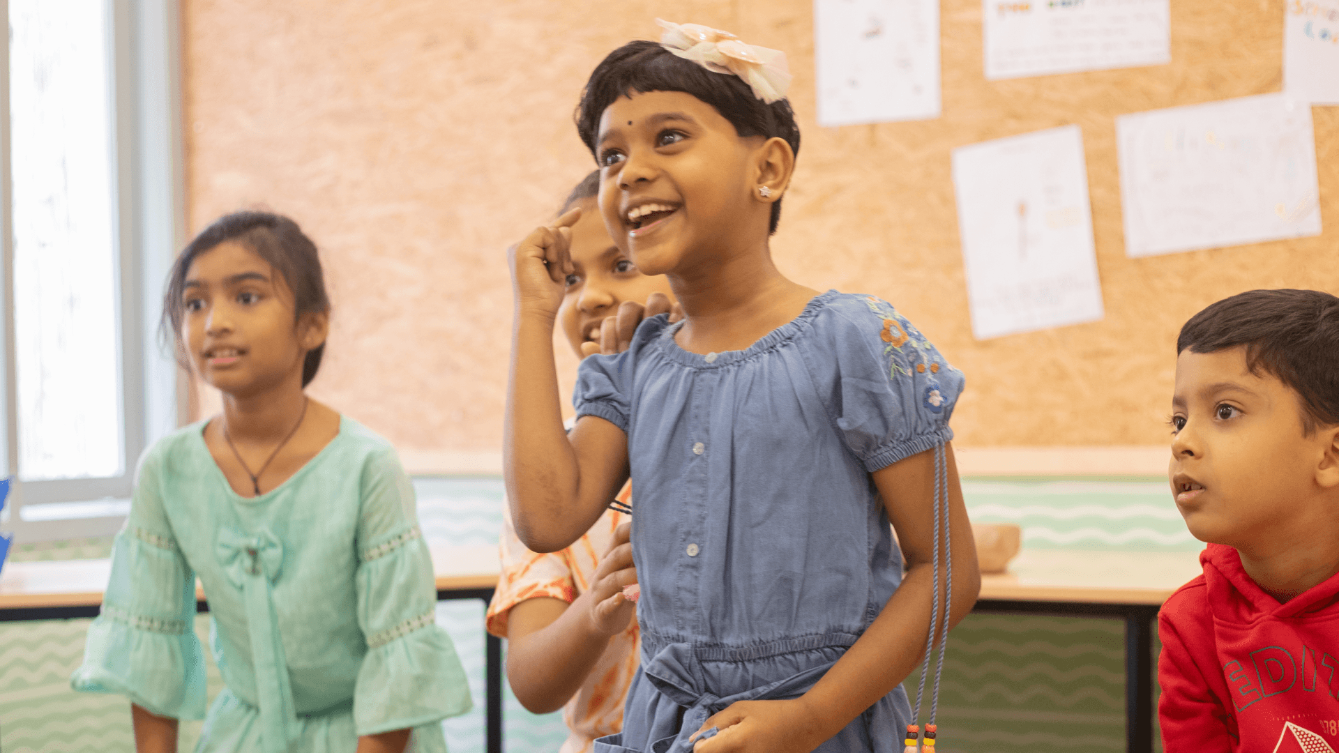 Children speak regularly in real settings — introductions, hosting roles, group shares, mini-showcases, speaking to parents in our coworking space — so skills become usable in school and life.