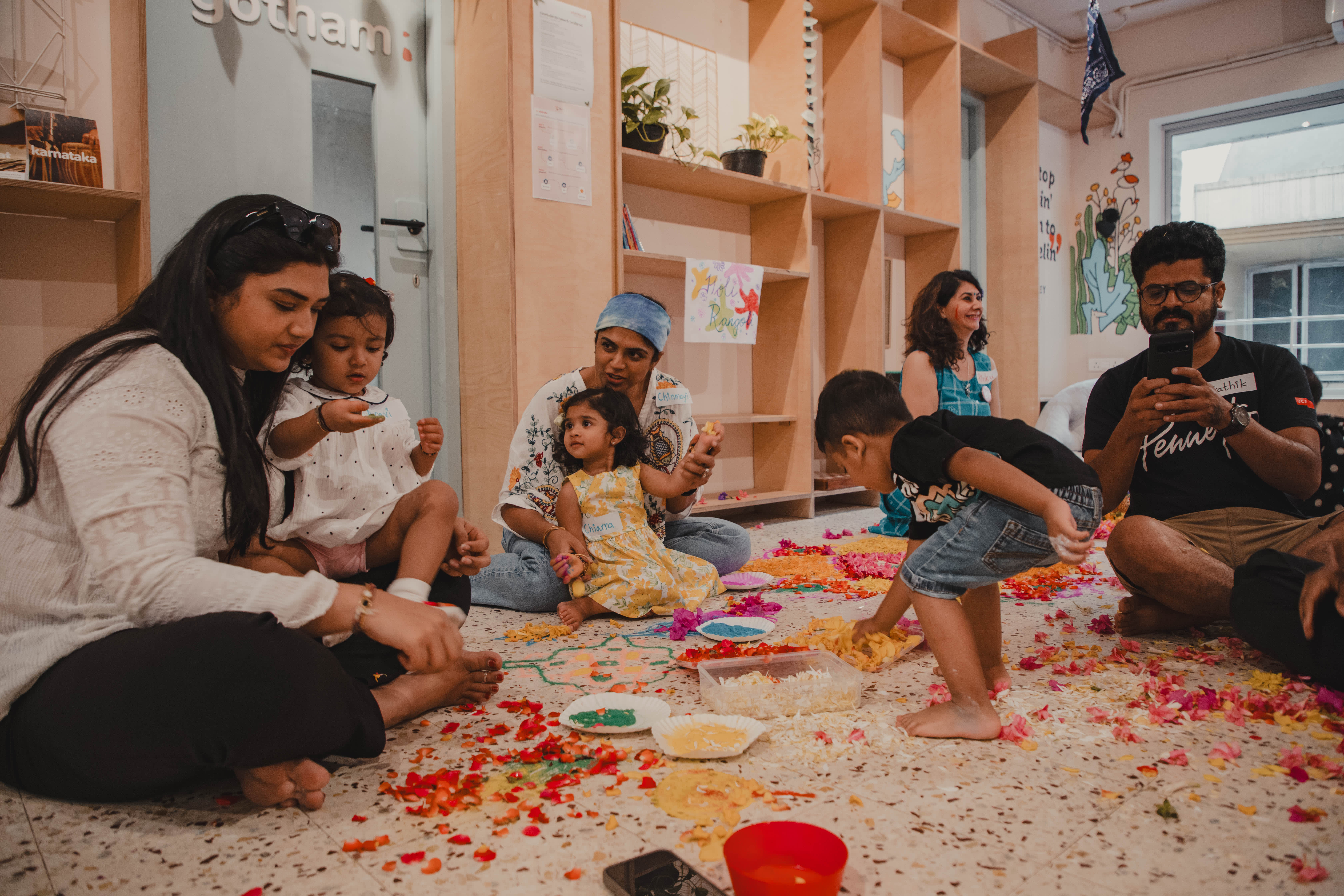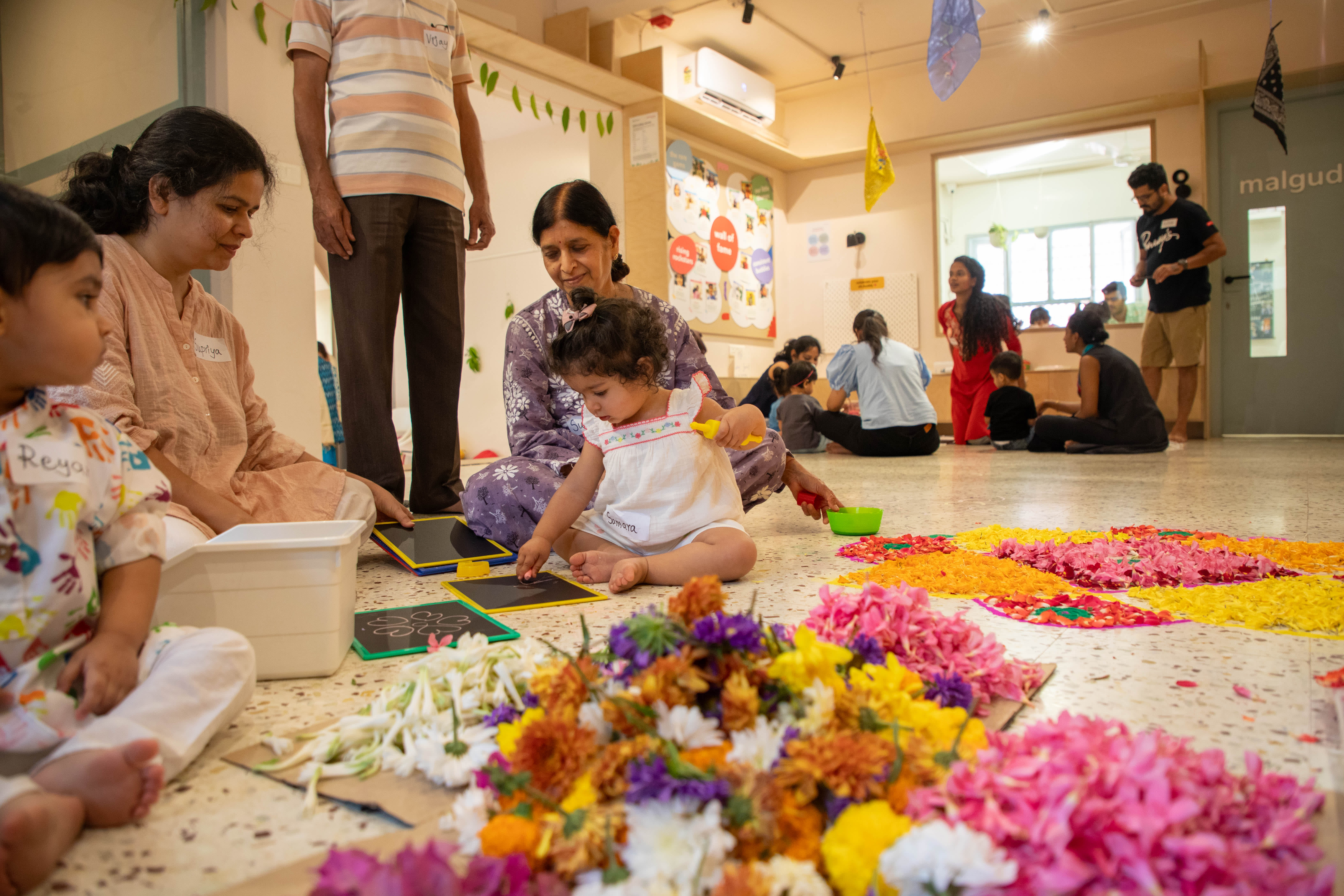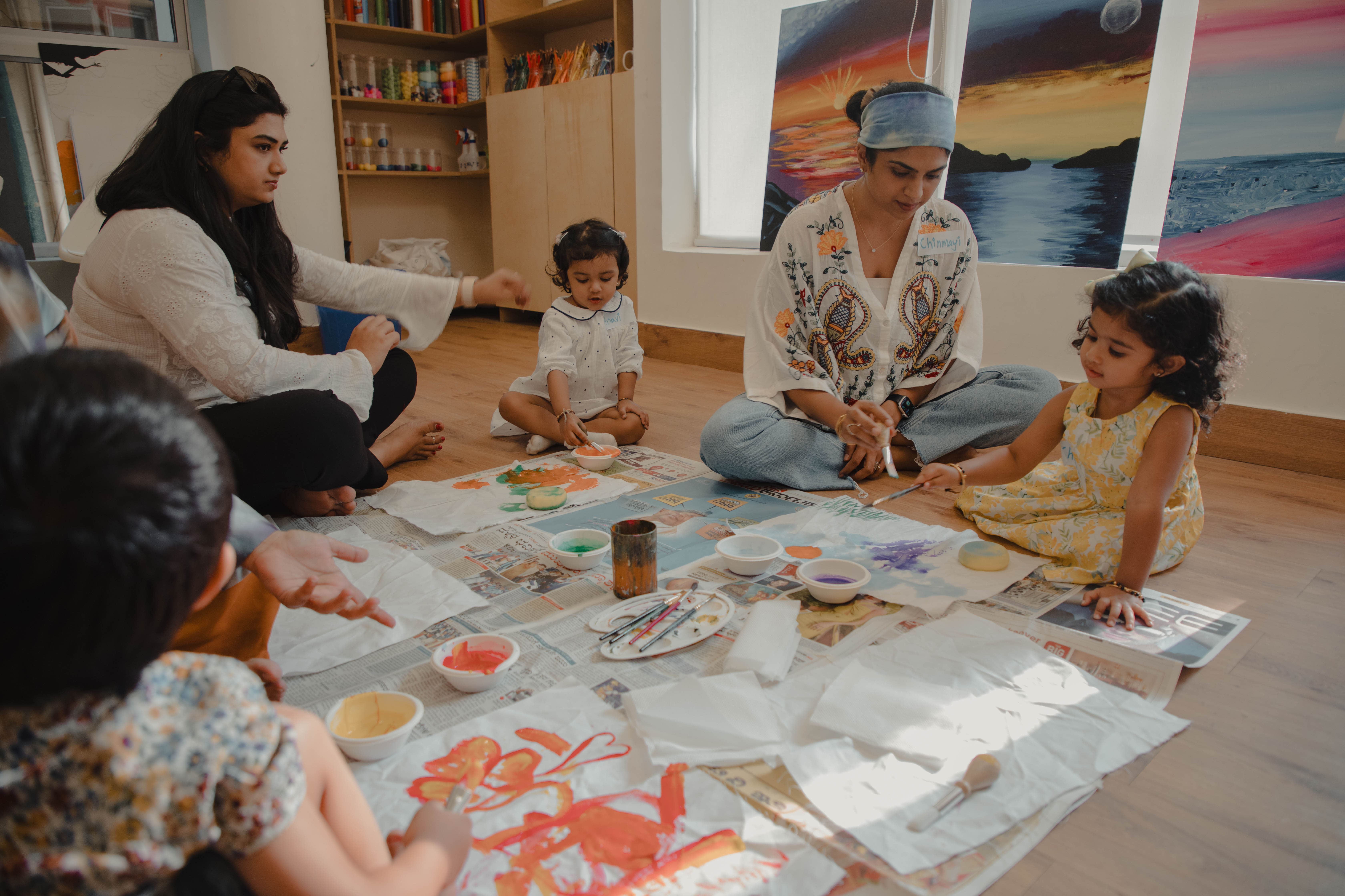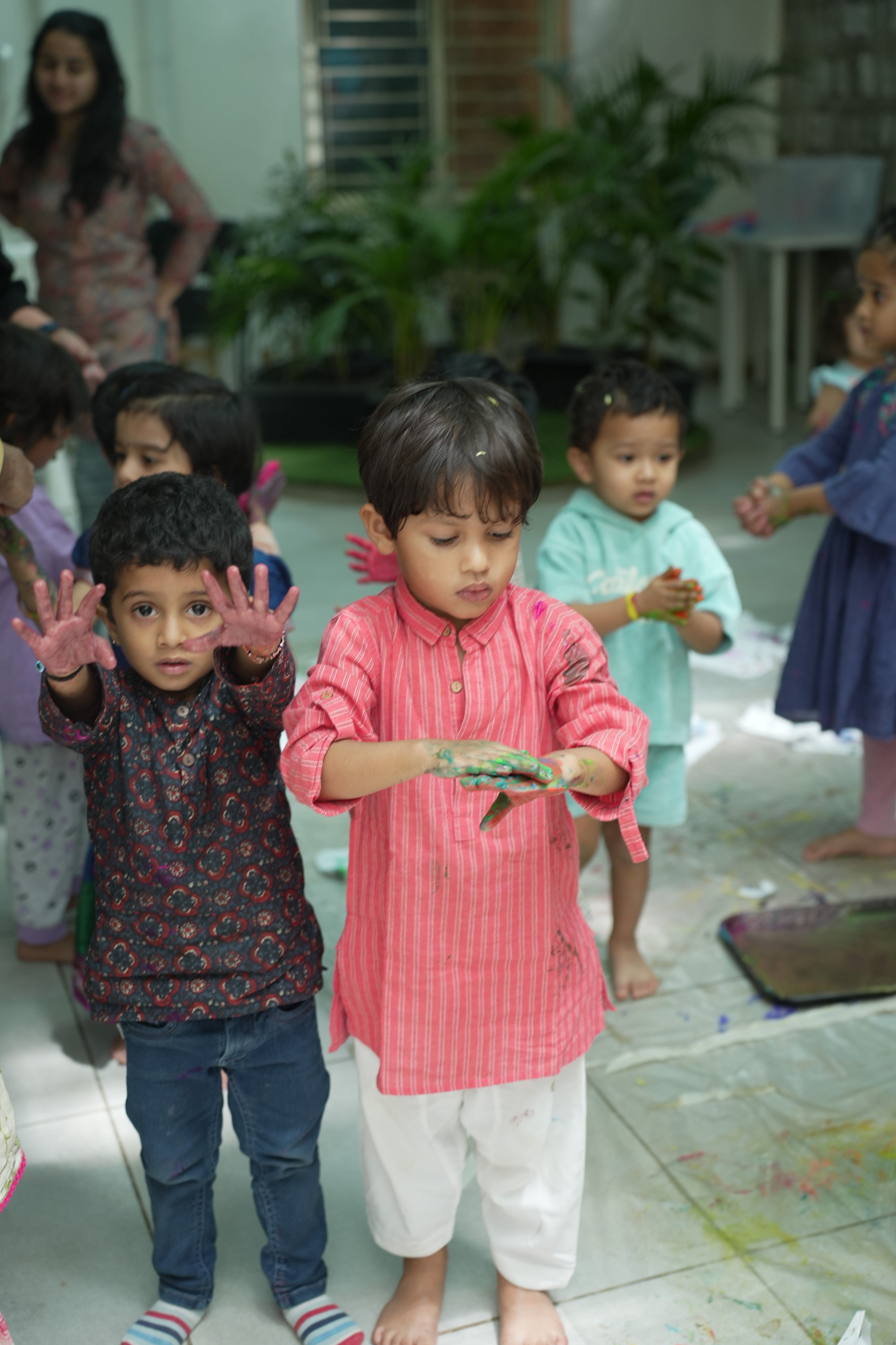 This Holi, we’re jumping into a flower-filled spring party — colours, messy play, and big smiles. Pound petals into colour, make flower prints on fabric, wear your own garland or crown, and finish with a ribbon dance.