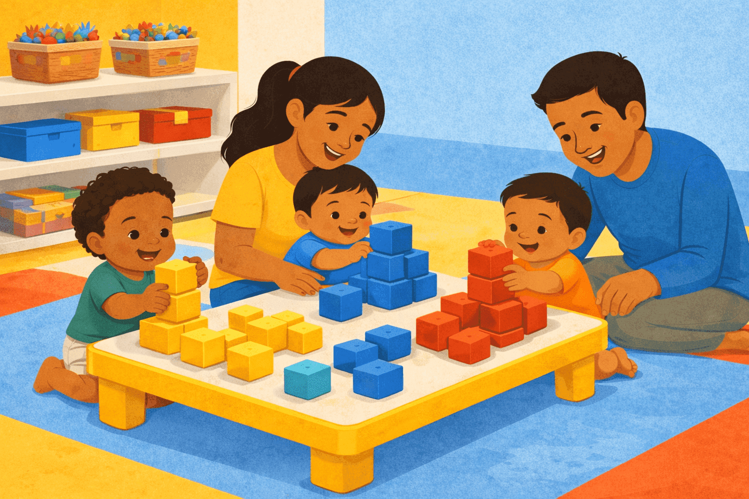 🧱 Primary-colour block sensory table