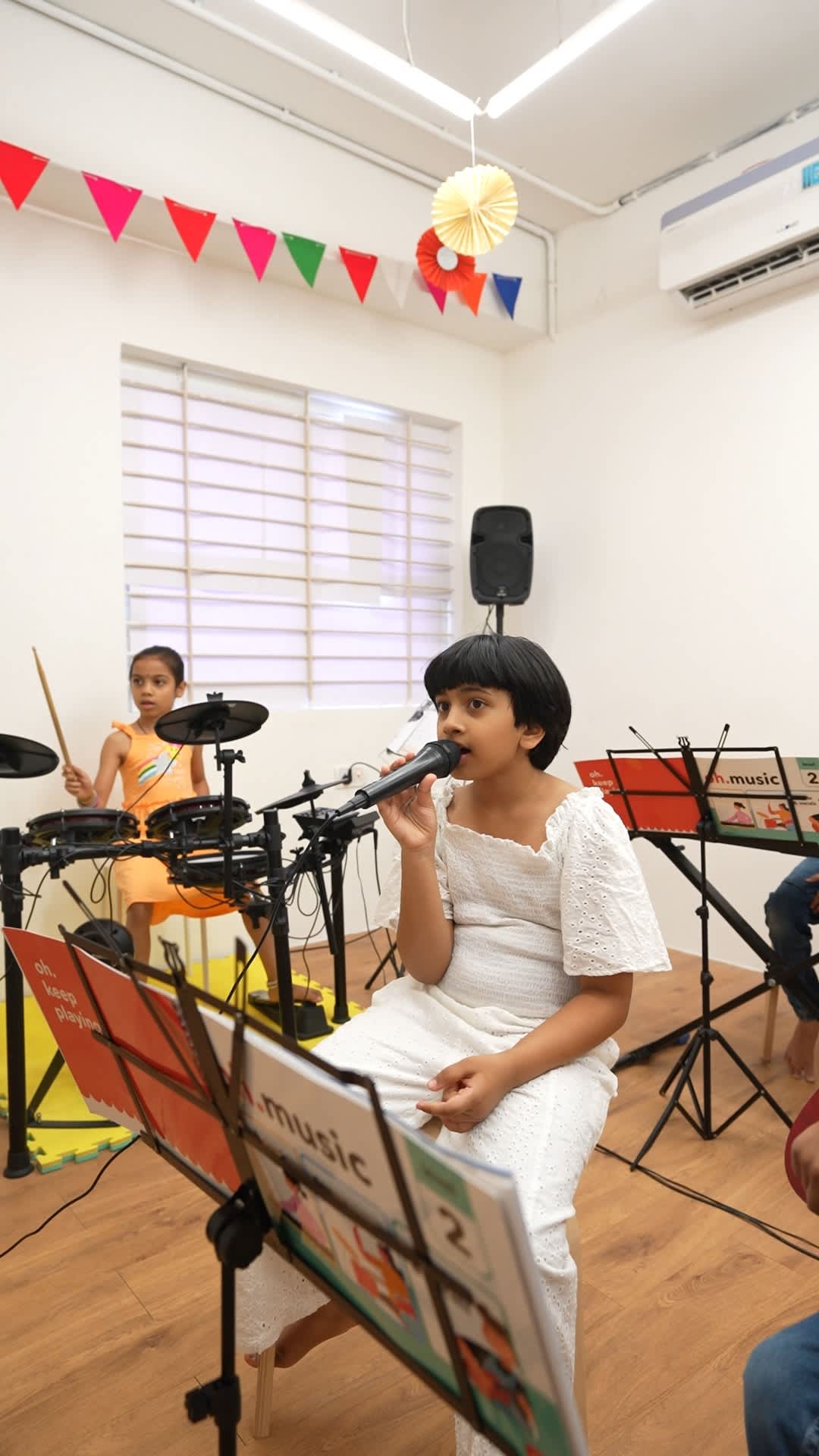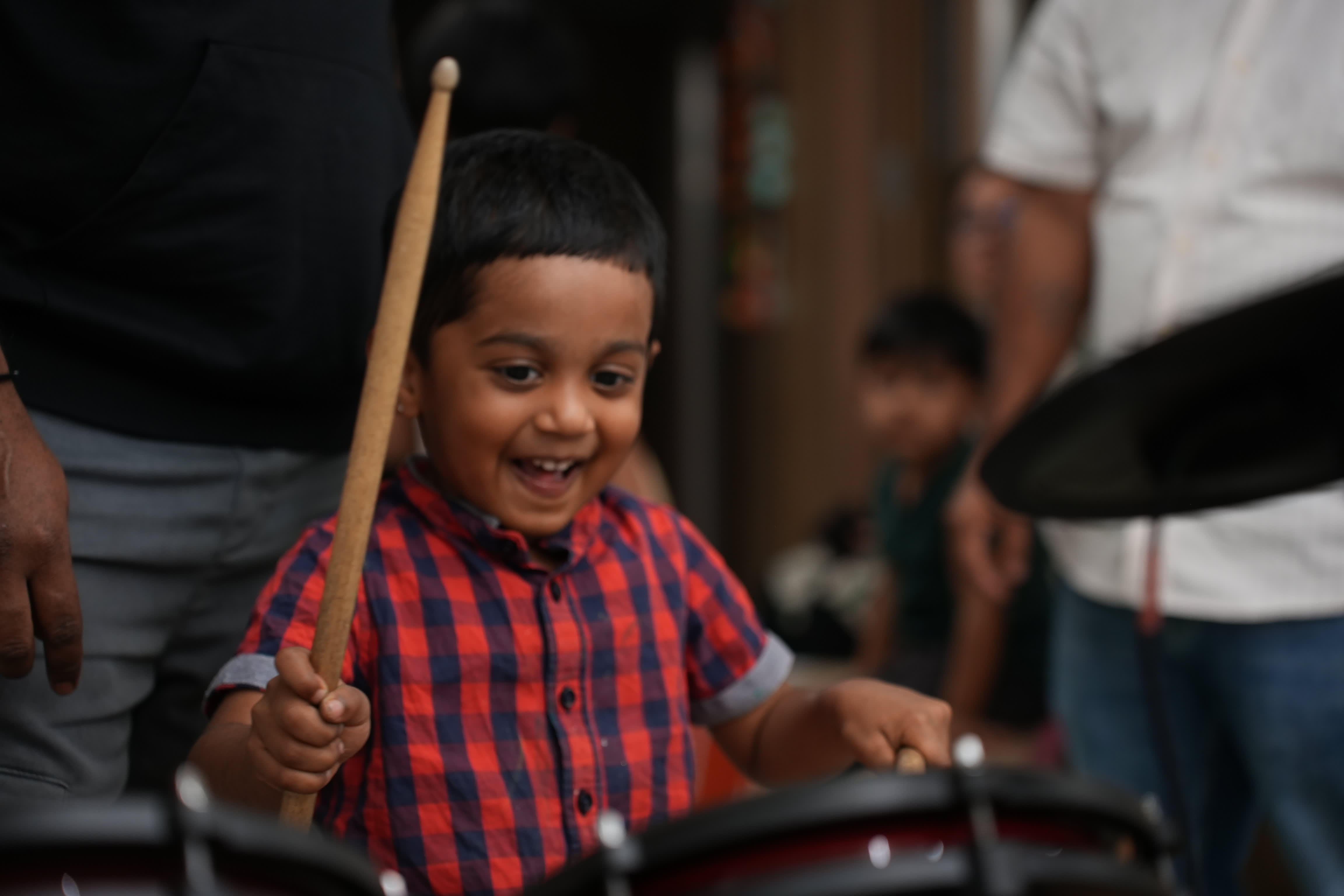 A beginner-friendly music workshop introducing children to singing and real instruments. Children learn a song step-by-step — first through voice, then on keyboard, drums and ukulele, and finally bring everything together to perform as a band.